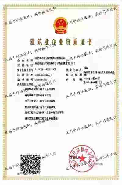 浙江清水建設(shè)安裝集團(tuán)有限公司成立于2013年,注冊(cè)資金6688萬(wàn)元。集團(tuán)具有消防設(shè)施工程專業(yè)承包壹級(jí)、城市與道路照明專業(yè)承包壹級(jí)、電子與智能化專業(yè)承包壹級(jí)、建筑裝飾裝修專業(yè)承包貳級(jí)、防水防腐保溫專業(yè)承包貳級(jí)、市政工程施工總承包貳級(jí)、機(jī)電工程施工總承包貳級(jí)、建筑工程施工總承包貳級(jí)、電力工程施工總承包貳級(jí)、機(jī)電工程專業(yè)承包貳級(jí)、環(huán)保工程專業(yè)承包貳級(jí)、古建筑工程專業(yè)承包貳級(jí)、特種工程結(jié)構(gòu)補(bǔ)強(qiáng)專業(yè)承包、建筑施工勞務(wù)作業(yè)專業(yè)承包(憑建筑業(yè)企業(yè)資質(zhì)證書經(jīng)營(yíng)